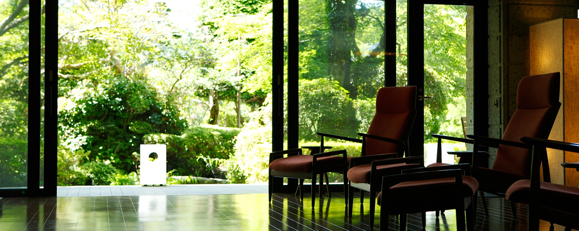 浴衣に着替え、ゆったり腰を下ろして、窓から眺める清々しい庭の景色に心が洗われるよう。和むひとときが、箱根の当館で待っています。